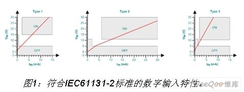 虽然DI可符合各种输入特性,但最常用的还是IEC61131-2标准的1类、2类、3类特性(请参见图1)。