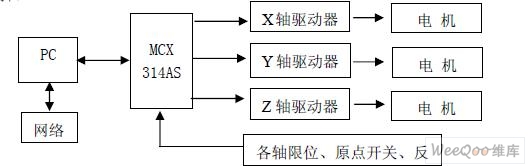 和性能价格比高的优势,故选用MCX314AS 作为运动控制器的核心IC。