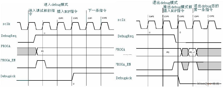 图1 进入debug模式的时序图 图2 退出debug模式的时序图