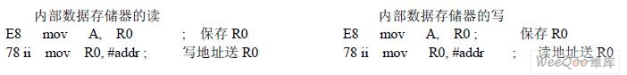 ⑷外部数据存储器、SFR、内部数据存储器的读和写