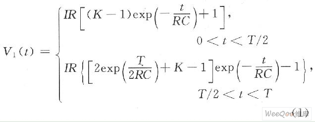 当探头中的电机带动动片和小叶片转动时,感应片上产生了交流感应电流信号,该交流电流信号经I-V转换电路后,得到交流感应电压信号V1(t),在一个周期T内其表达式为: