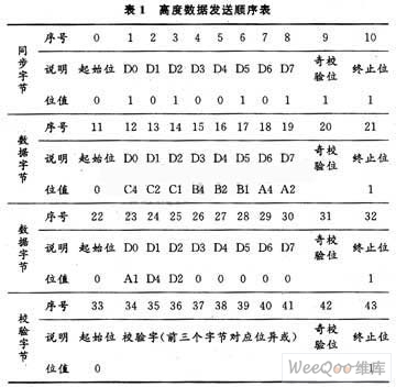 一条完整的高度信息的发送方法:先低字节后高字节,先低位后高位。传输比特率为9 600 b/s。数据刷新率为35±15 ms。