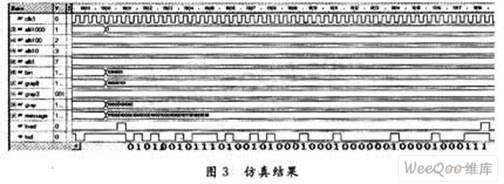 使用Active HDL 6.1仿真软件进行仿真,仿真结果与理论设计结果完全吻合。图3所示的是高度值为123 700英尺的仿真截图,图中,转换后的二进制格雷码高度编码为1000 0101 001,高度数据为1110001000010000001000 10001010010 11101001010,这是为了下一步串口发送提供方便而经过反转处理的,实际高度数据信号应为01010010111 01001010001 0001000000100001000111,串口发送数据为:0101001011101001010001 00010000001 00001000111(图中用红色标注),与高度数据一致。经验证高度编码、高度数据和串口发送数据都是正确的。