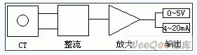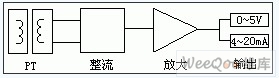 交流信号又分为交流电压和电流信号。图1为交流电流信号的检测原理框图,图2为交流电压信号的检测原理框图,由CT和PT对信号进行隔离,电流为穿孔输入方式,电压为端子接线输入方式。