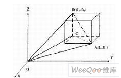 采集卡与工作站之间通过RS-232总线进行通讯,MCU串口波特率为19200bs,工作站监控软件采用VisualBasic和SQL,将其MSComm控件的Settings属性设置为“19200,E,8,1”。使用串口与工作站连接,从速率上可以满足远程监控系统的要求,而且可以降低成本。如果使用基于PCI总线的CAN总线适配卡,尽管可以提高通信速率,但是也增加了不少成本,况且,还要将协议转换和故障判断的任务移交给上位机,增加了上位机的负担,会影响整个系统的实时性。综合比较,还是CAN-232的性价比较高,适合本系统的使用。监控软件每隔40ms可以得出如图4的旋转角=∠AOC和俯仰角=∠COB,为了使求出的角度与COMPASS得出的角度协调,以正北为零度来进行角度调制,角度范围从0~359.9。