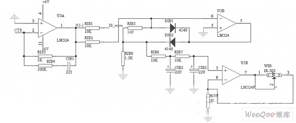 信号调理电路设计的目的就是对从传感器过来的信号进行放大提升等处理后送进ADC模块。放大倍数可以通过变换电阻阻值来调整。下图是信号调理电路原理图。