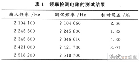 最后,采用了Altera DE2开发板,将设计的电路下载到硬件电路中,从而完成了对整个频率检测电路的设计工作,并利用函数发生器对电路进行了验证。在2 MHz左右的测试结果如表1所示。