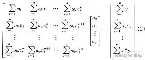 令:ωi=1,即取{1,x,…,xm)为基函数的代数多项式进行拟合。考虑到精度与速度平衡统一,经实验验证分析选取m=2,n=4,利用克莱姆(Cramer)算法求解出系数a),a1,即可得补偿曲线方程式: