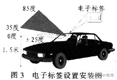 组合两片式标签综合RFID和IC卡技术的优点,由“两片式电子标签+双界面CPU卡”组成,既能精确记录车辆在路网内的行驶路径,又具备普通IC路网收费功能。采用标准的IC卡接口(通常为ISO7816规格的接触式IC卡接口或ISO14443规格的非接触IC卡接口),与IC卡共同组成一套完整的组合两片式车载设备。为保证足够的信号强度,使用有源式标签。该设计具有优点:(1)系统以IC卡作为收费介质,充分兼容半自动收费(MTC)和电子收费 (ETC)的能力;(2)适合我国基本国情,既适于已建立的收费系统和MTC收费系统,又达到电子收费的功能要求。其设置安装如图3所示。