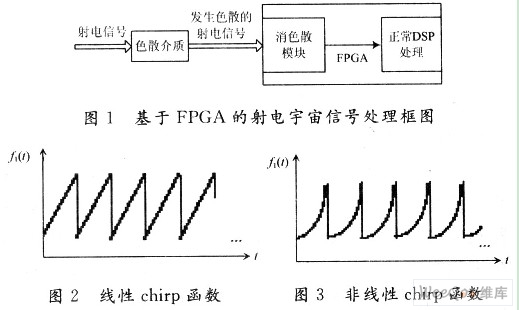 电磁波在传输过程中,经过色散介质,如不均匀的波导,在高空电离层时会发生色散现象。Chirp函数在射电天文信号的消色散处理中发挥着重要的作用,研究在FPGA中实现Chirp函数是基于FPGA的射电宇宙信号处理的重要组成部分,如图1所示。