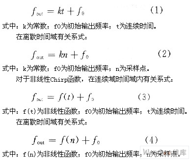 根据Chirp函数在频域上的性质,可以得出输入控制字与输出频率之间的对应关系有线性和非线性两种: