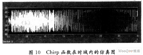 从图11中可见,输出信号的频率发生了周期性并且有规律的变化,证明了该设计能很好地实现Chirp信号源的功能。并且通过Altera DSP Builder提供的SignalComplier工具,能很轻松地生成HDL(VHDL或者Verilog HDL)代码下载到FPGA中运行,大大简化了FPGA设计。