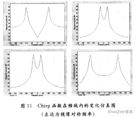 根据输出频率与当前采样时刻对应递变规律,Chirp函数一般分线性(Linear)Chirp函数和非线性(Nonlinear)chirp函数两种。图2,图3是两种Chirp函数在频域上的表现图。
