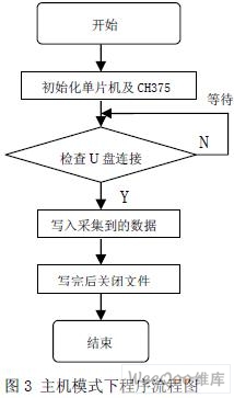 CH375的 U盘文件级子程序库提供了 USB存储设备的文件级接口,这些应用层接口 API包含了常用的文件级操作,可以移植并嵌入到各种常用的单片机程序中,编写程序时可以直接调用这些 API函数读写 U盘。单片机读写 U盘的程序流程如图 3所示。