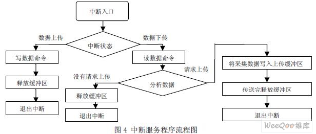 (7)退出中断服务程序。 单片机主要在中断中完成数据收发与处理,中断服务程序流程图如图 4所示。
