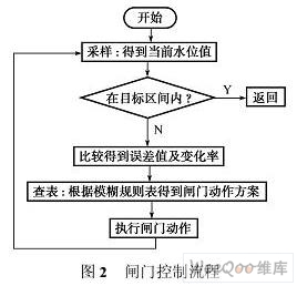 闸门控制系统属于典型的大滞后、多相关因素的非线性系统,本设计采用模糊专家系统的算法方案对其进行智能控制。基本的控制流程[5]如图2所示。