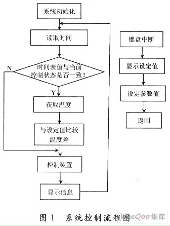 系统总体设计思想是以SST89E564RC单片机为控制核心,整个系统硬件部分包括温度检测部分、控制执行部分、显示及键盘系统及最小系统基本电路。系统利用单片机获得温度传感器数据并与系统设计值进行比较,根据比较结果分别控制执行系统。温度控制系统控制框图如图1所示。