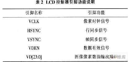 LCD控制器引脚分为时序控制端口和数据端口。与该设计相关的端口具体含义见表2。