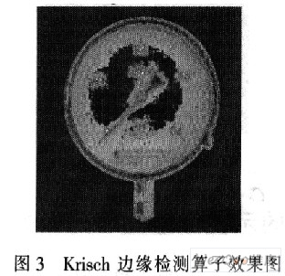 Krisch算子是一阶微分算子,用于检测图像的阶跃性边缘,算法简单、编程方便,对带噪声的边缘较敏感,有时会造成假轮廓或生成某些并不存在的边缘点,对于屋顶型边缘无效,其效果图加图3所示。