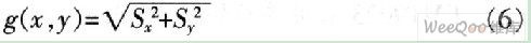 式(5)应用了f(x,y)邻域的图像强度的加权平均差值。其梯度幅度为: