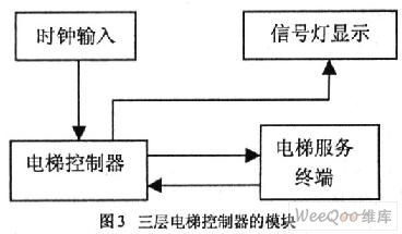 三层电梯控制器的VHDL描述模块流程如图2所示。三层电梯控制器的源代码(见附录)可知: