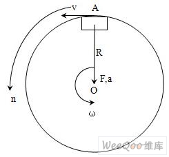如图1示,加速度传感器A安装在半径为R(米)的匀速转动的圆盘上,设圆盘的转动速度为n(转/分),圆盘转动的角速度为ω(弧度/秒),物体运动的线速度为v(米/秒)。物体的向心力为F(牛),向心加速度为a(米/秒2)。加速度方向指向圆心,即与物体的运动方向垂直。
