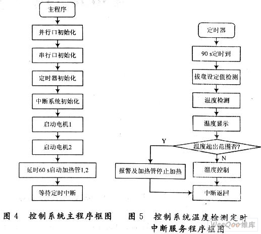 主回路采用空开和接触器实现,控制回路由单片机控制系统实现。系统启动顺序是:油泵电动机、真空泵电动机、加热管。两组加热管可分别单独加热和停机,但只有真空泵电机启动后加热管才能启动和运行。