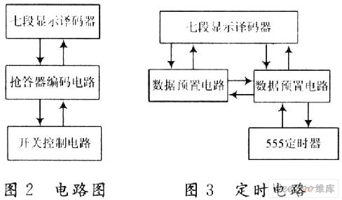 (5)参赛选手在设定的时间内进行抢答,抢答有效,定时器停止工作,显示器上显示选手的编号和抢答的时间,并保持到主持人将系统清除为止。