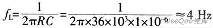 系统传感器采用EG& GICSENSORS公司的3028型加速度传感器。由于该传感器的输出为差分输出,所以采用一个仪表放大器将其差分输出转换为单输出;又由于该传感器具有 16.8 mV的零位输出电压,因此第1级放大倍数应尽可能小,目标震动信号叠加在放大的零输出电压上可能产生饱和失真,即可能被削顶,因此Rg1应取得大一些。在此Rg1=10 MΩ,这样第1级放大倍数G1≈1,于是传感器的零输出电压几乎未放大,目标震动信号不至于由于其零输出电压的影响而失真。由于第1级放大电路的仪表放大器的输出信号中仍叠加有传感器的零位输出电压,该电压为直流或接近于直流的信号,为避免其在后续电路中被放大,在第2级放大电路前需加一个高通滤波电路隔离该信号。在此用RC二阶高通滤波器消除零输出电压对后续目标信号放大的影响。这里选取R=36 kΩ,C=1μF,则此高通滤波器的截止频率为: