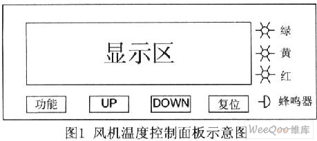 本系统采用PT1000温度传感器检测环境温度(温度检测精度0.01℃),根据环境温度变化控制风机降温,并具备按键手动设定温度上下限、声光报警等功能。其控制面板示意图如图1所示。