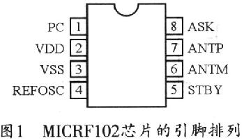 MICRF102采用8引脚SOIC封装,图1所示是其引脚排列图。