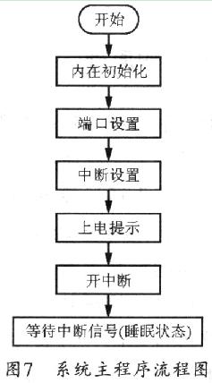 本系统中的单片机主程序流程图如图7所示。系统软件的设计主要是通过编程实现单片机AT89C2051对开关电路状态和控制。单片机采样到有效中断请求信号,便执行中断服务子程序。在中断服务子程序中,单片机将根据I/O口获得的数据执行相应的子程序,从而实现对受控电路的控制。充分利用单片机的软硬件资源,可以实现对受控电路的多种状态的控制,还可以用单键来控制多路电路。