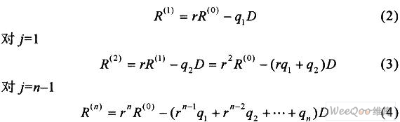这里_j=0,1,…,n-1为递归下标;D为除数;qj+1为小数点右边第j+1位商;r为基数,r×R(j)为部分被除数;R(j+1)为部分余数;R(0)为被除数(初始部分余数);R(n)为最后余数。