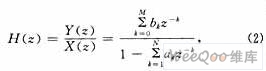 其中,x(n)为输入序列,y(n)为输出序列,ak、bk为各自的系数。其对应的系统函数为:
