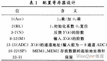 其控制逻辑中的配置寄存器(32bits)设计如表1所示。