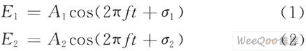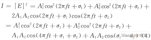 式中:A1和A2分别为光波的振幅;σ1和σ2分别是光波的位相;当E1和E2满足相干条件时,其光波的合成复振幅E为: