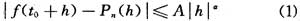 设n为非负整数,n≤α≤n+1,如果存在两个常数A和h0(>0),及n次多项式Pn(t),使得对任意的t0,均有: