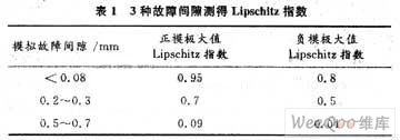 在试验中故障信号是奇异的,其Lipschitz指数小于1,因此Haar小波可满足检测的要求,并且使小波变换的模极大值最小。试验分别模拟了3种故障间隙,测得Lipschitz指数如表1所示。