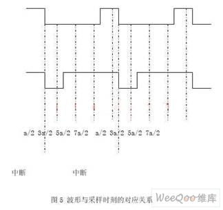 将GL3276A的OUT输出信号经74LS14两级施密特反向器整形后与89C51的P3.2(/INTO)相连,由于每位码都以4a为周期,每位的起始总是由高电平到低电平,因此解码的过程可用每位码的起始边沿作为/INTO的中断请求信号,中断响应后关/INTO中断,然后延时a/2,由P3.2对红外线遥控接收电路的输出信号进行采样,再延时a,分别在3a/2,5a/2,7a/2时刻进行采样,波形与采样时刻的对应关系见图5。