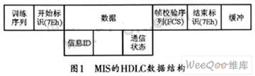 MIS的数据控制采用高级数据链路控制规程(HDLC)。HDLC是面向比特的协议,使用位填充来保证数据的透明性。HDLC规程具有透明传输、控制简单、可靠性高、传输效率高的特点,因而具有极大的灵活性。图1所示是MIS系统的HDLC数据结构。