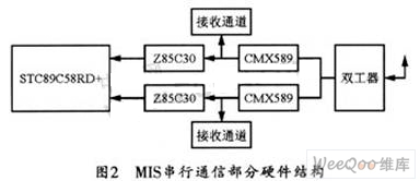 动目标识别系统(MIS)中的串行通信主要是MIS协议帧的实现。图2所示是其硬件模块的主要结构。
