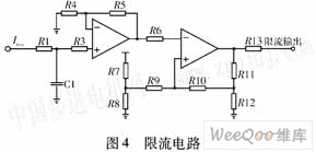 恒功率运行可以保护电机本体、驱动电路以及该电机所驱动的设备。本文设计的限流控制电路由运算放大器及其外围电路组成,如图4所示。