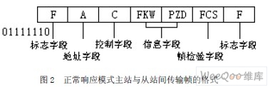 主从方式的数据链路协议与局域网标准不同, 它符合HDLC 中的非平衡正常响应模式(NRM)。该模式的工作特点是:总线上一个主站控制着多个从站, 主站与每一个从站建立一条逻辑链路;主站发出命令(Command),从站给出响应(Respond);从站可以 连续发送多个帧,直到无信息发送、达到发送数量或被主站停止为止。数据链路中帧的传输过程分为三个 阶段:数据链路建立、帧传输和数据链路释放。