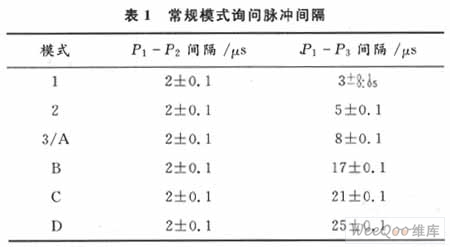 按照国际民航组织的规定有六种常规询问模式,分别称为1,2,3/A,B,C,D模式,各种模式的P1与P2,P1与P3之间的时间关系如表1所示。