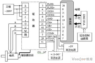 在数控冲床的单轴送料系统中,要求执行电机的空载响应时间在40—60ms以内。而步进电机的响应时间(一般在200ms左右)不能满足该系统快速响应的要求,故本系统选用松下公司交流伺服电机MSMA750W和DMC301A分别作为执行电机和上位控制器。