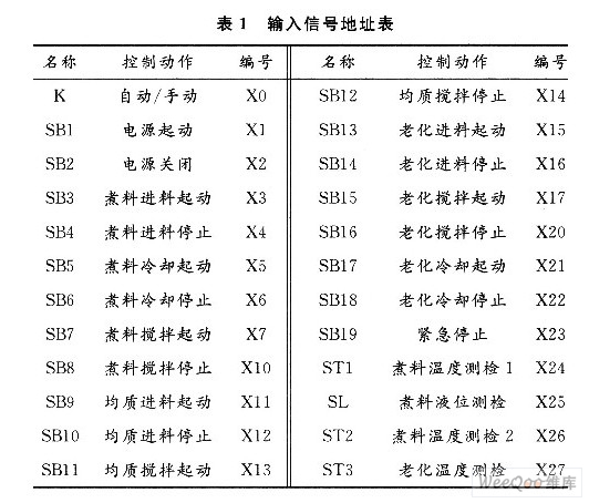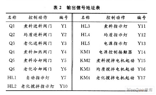根据控制过程和要求,编制输入/输出信号地址表。输入信号地址表如表1所示,输出信号地址表如表2所示。