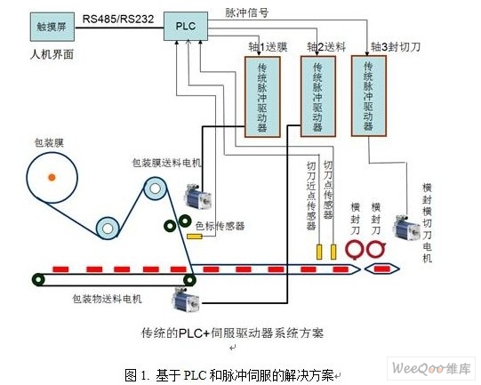 图1和图2显示了传统的PLC+伺服驱动系统方案以及采用智能伺服控制器的iPack2000系统方案结构对比。