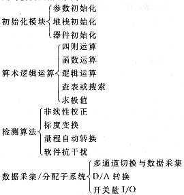 微机自动检测系统软件通常由监控程序、中断服务程序、检测与控制算法、通信与控制程序等组成。系统常用的模块及相互关系如下: