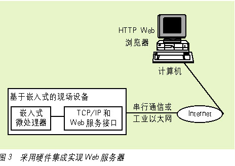 (2)通过辅助硬件实现TCP/IP协议栈,控制设备集成形式实现Web服务器。