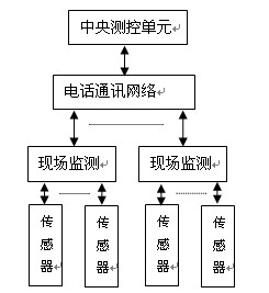 本系统主要有三部分组成:现场监测、通讯网络(电话网)、中央测控单元。下图1是系统总体结构。